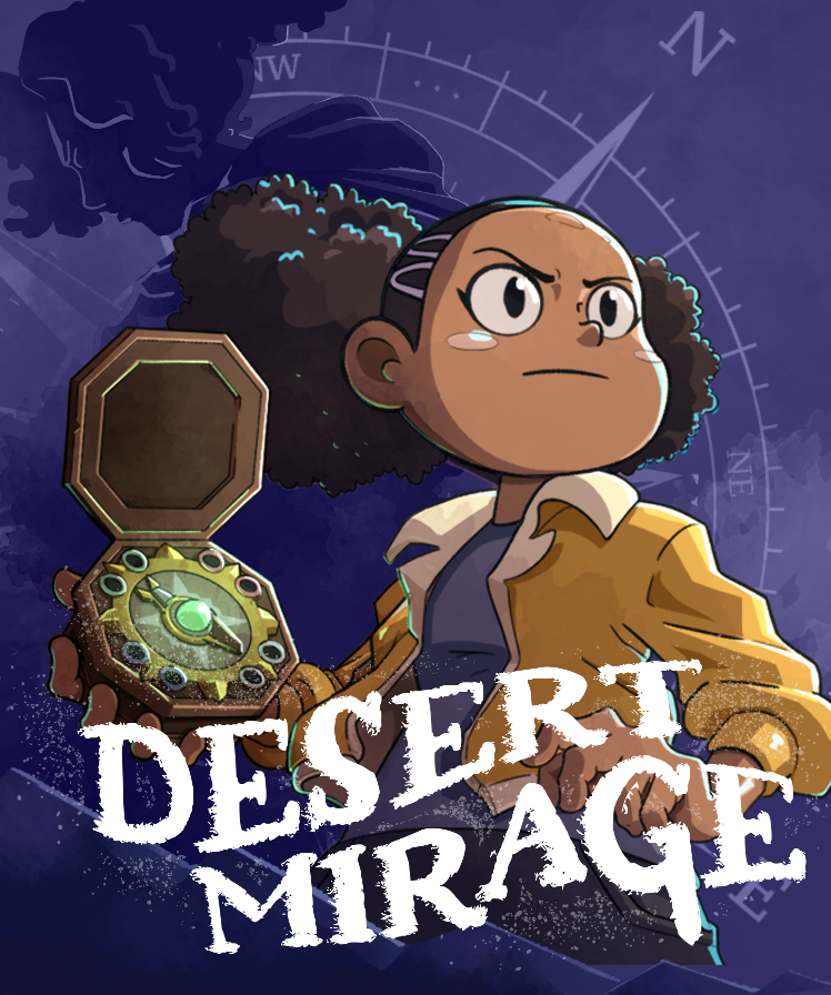Inspired by games like Oxenfree and Limbo, we set out to create Desert Mirage as a narrative-driven mystery game with a darker atmosphere, offering players meaningful choices that will impact their journey. While incorporating elements of exploration and investigation to influence decision-making, we also infused the game with regional aspects from our own experiences, crafting a setting and stories that feel truly unique. Bia searches for her missing sister, trying to find the truth in a mysterious city. By talking to locals, she gathers clues to decide her path. Guided by a mysterious compass, she explores a desert of oasis, solving puzzles across diverse environments, until she discovers the truth. In the heart of the desert, every choice is a crossroads, shaping your journey and deciding the future of the ones you love.